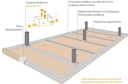 Sistema de fijación diseñado y patentado por Sonpura. Estabilidad del 100% eliminado cualquier movimiento de la base para un descanso más confortable.