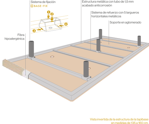 Sistema de fijación diseñado y patentado por Sonpura. Estabilidad del 100% eliminado cualquier movimiento de la base para un descanso más confortable.