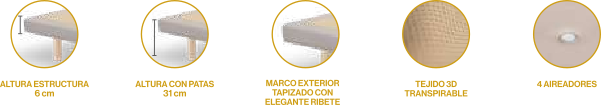 Essence tiene un tejido 3D con aireadores que garantiza la máxima transpiración, ayudando a prevenir el desarrollo de ácaros. Robusta, resistente y con una gran estabilidad gracias al sistema de fijación diseñado y patentado por Sonpura Base Fix, elimina cualquier movimiento de la base mientras duermes. Tiene una estructura metálicacon acabados anticorrosivos, un sistema de refuerzo y un soporte en aglomerado que ofrece una mayor calidad estructural.
